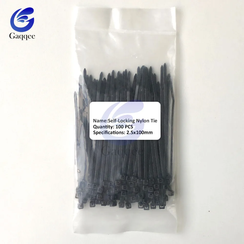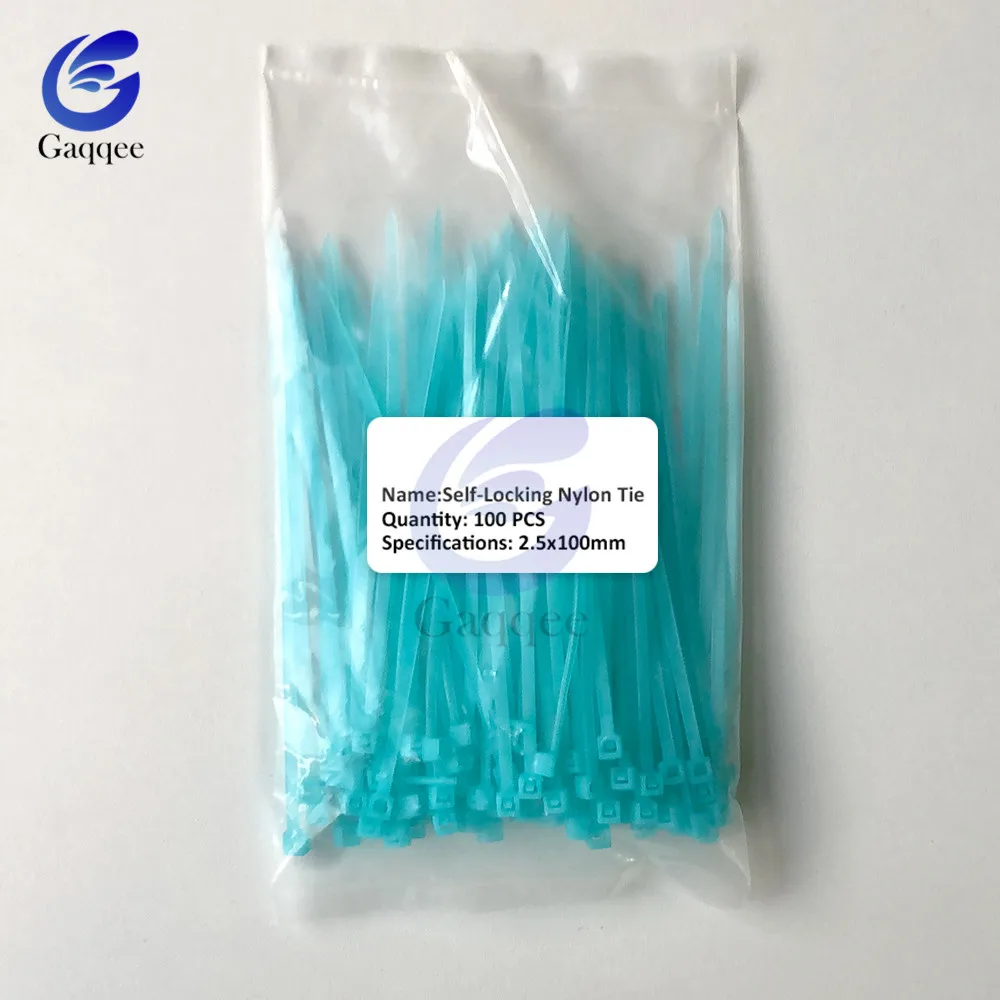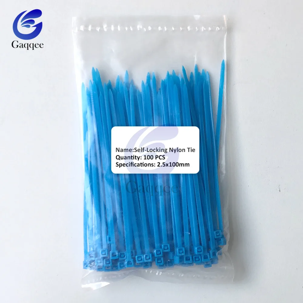 Нейлоновая кабельная стяжка 100 мм, самоблокирующиеся Нейлоновые кабельные стяжки 100 шт.упак., 12 цветов, ширина 2,5 мм, Сертификация SGS