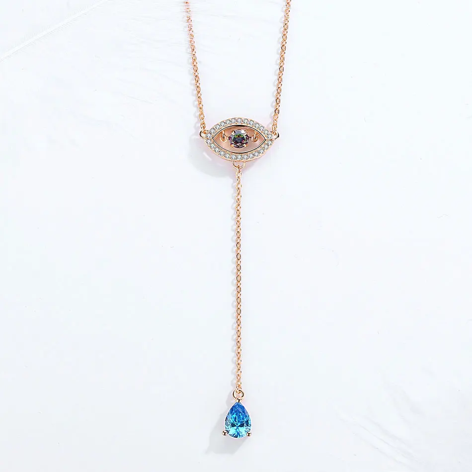 Ожерелье KALETINE из стерлингового серебра 925 пробы, женское ожерелье с подвеской в виде капли воды и сглаза, длинная цепочка с голубым цирконием, украшения из Турции