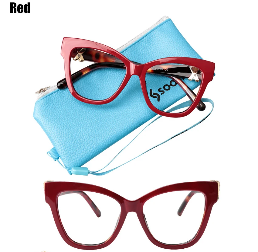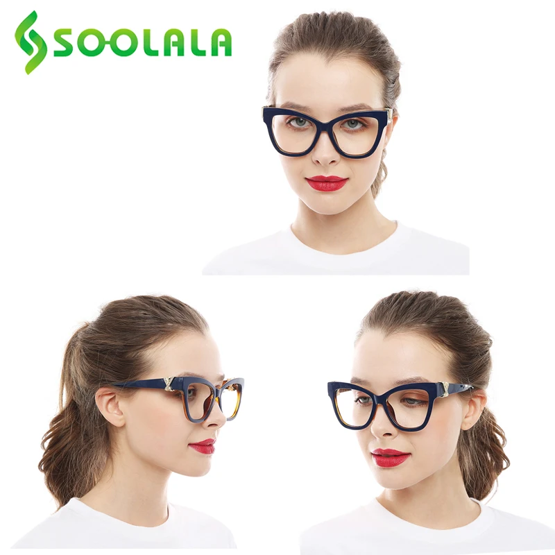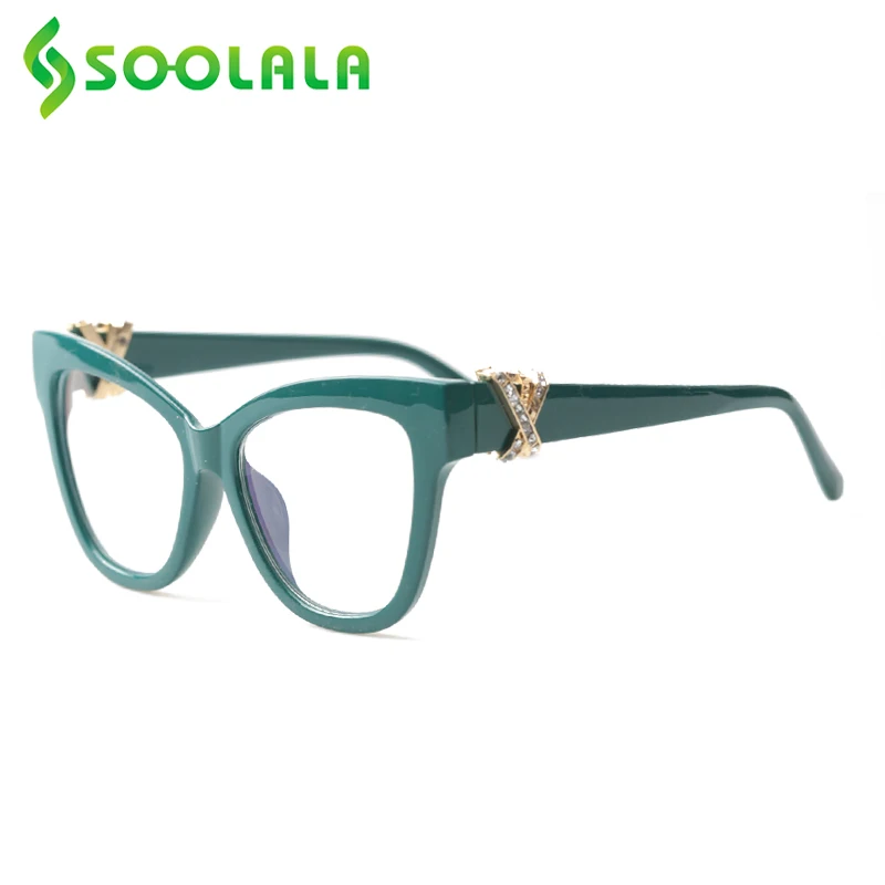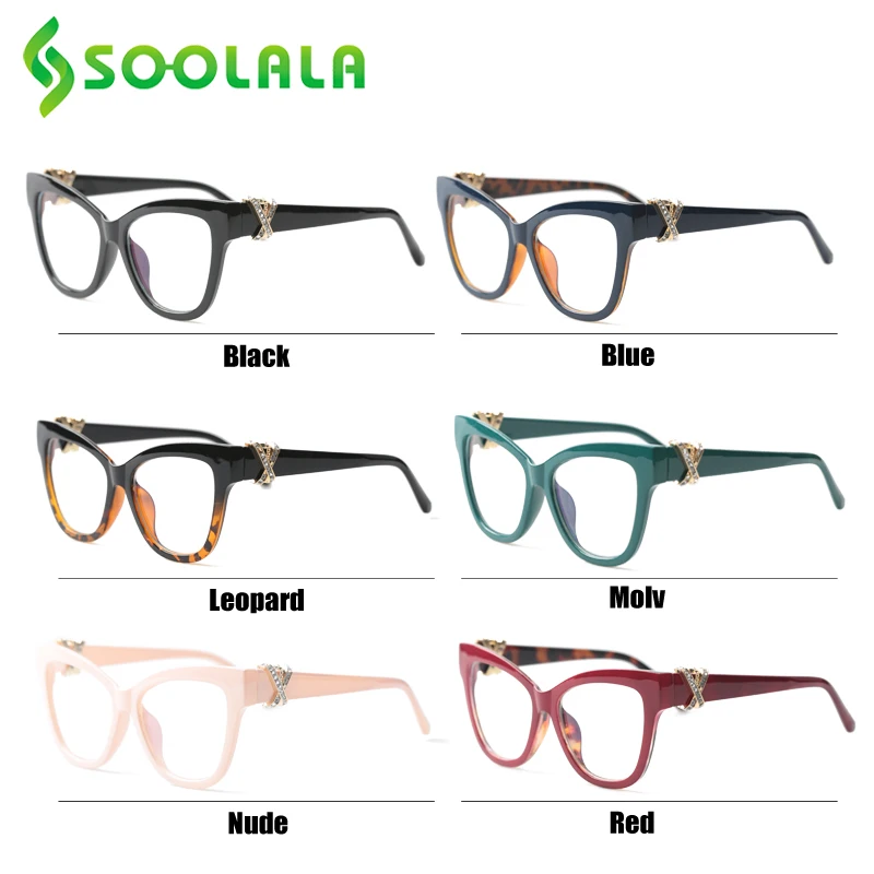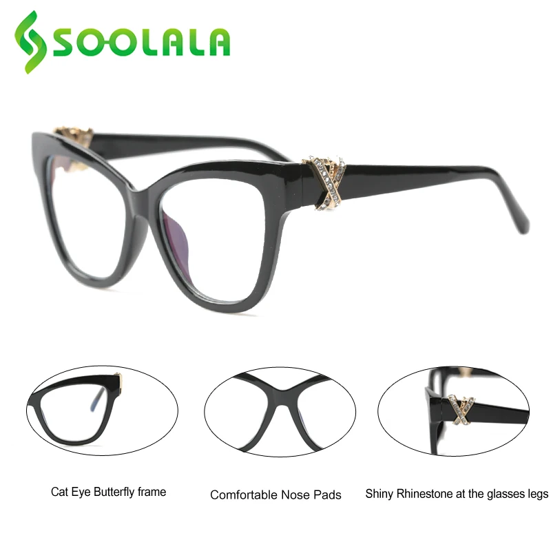Очки для чтения SOOLALA очки для чтения кошачий глаз с защитой от синего светильник, женские очки для чтения с крестиком и стразами, Пресбиопия с футлярами 0,5 1,0