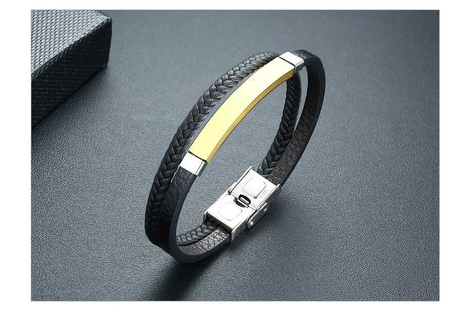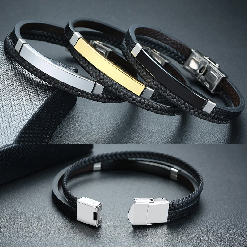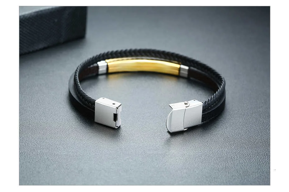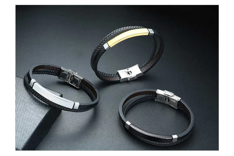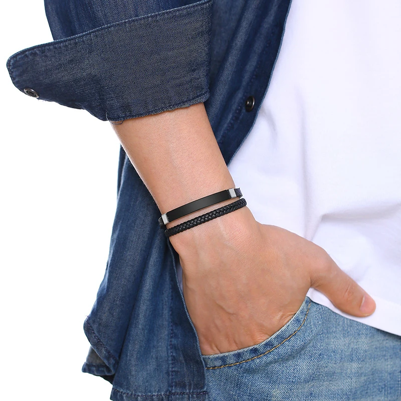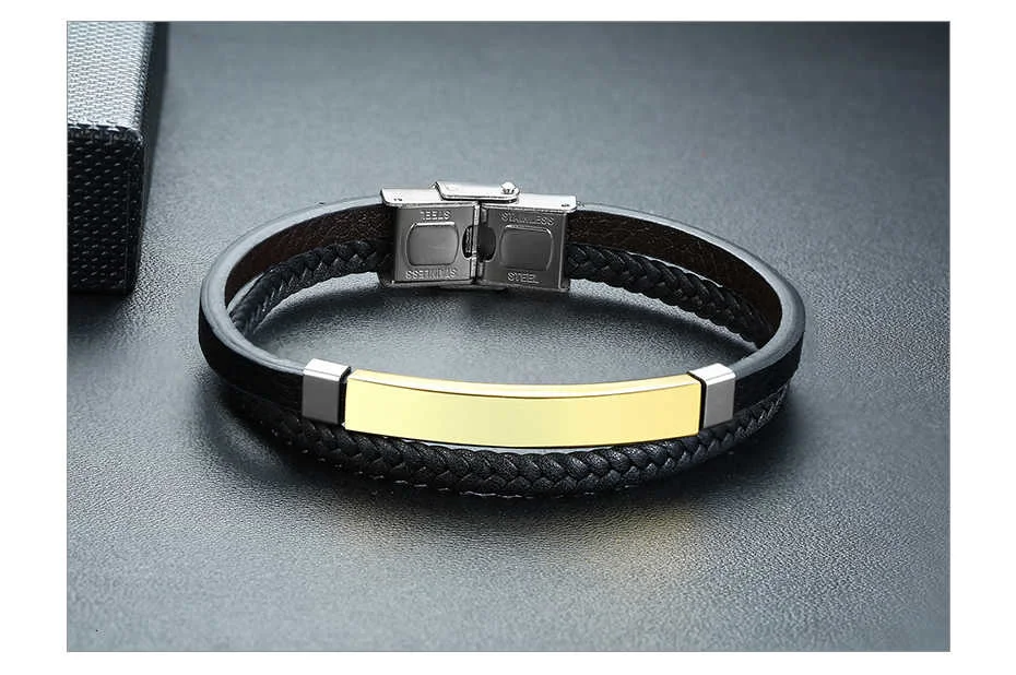 Мужской плетеный браслет Vnox из нержавеющей стали, повседневный Плетеный браслет с именем на заказ