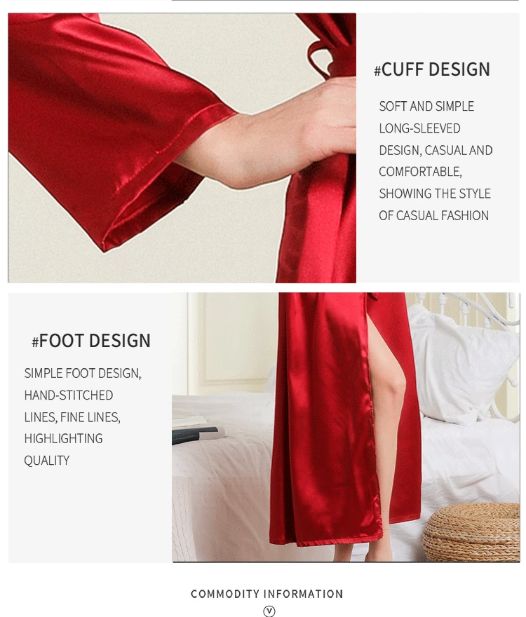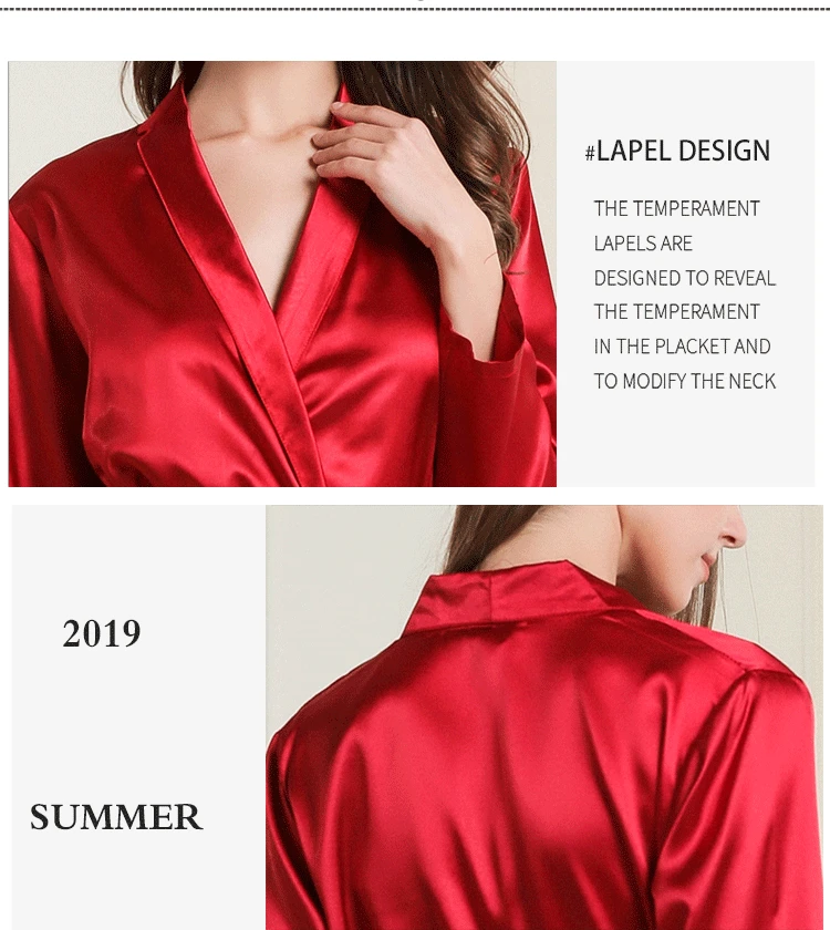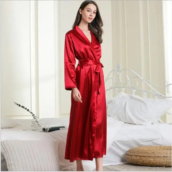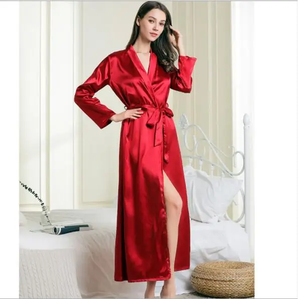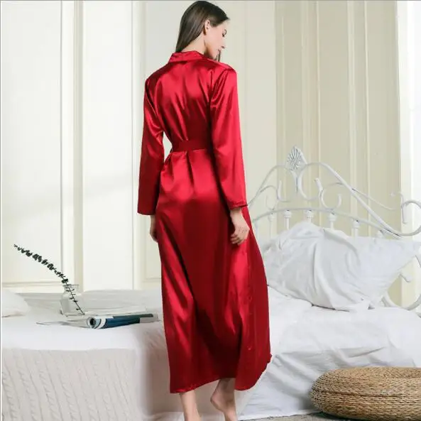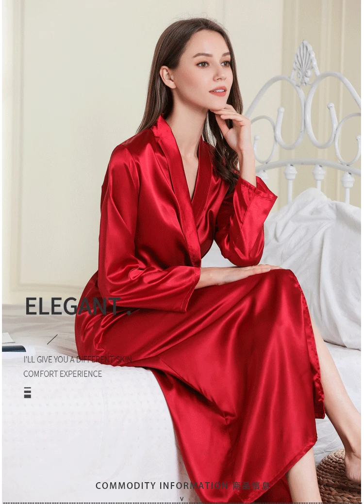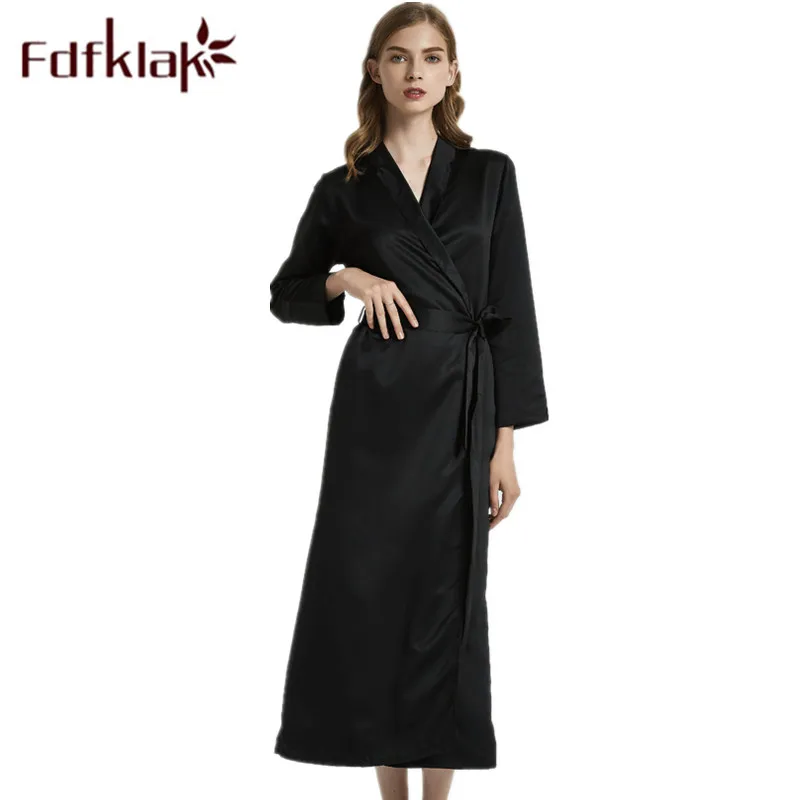 Шелковые халат Fdfklak для женщин, весенне-летняя сексуальная одежда для сна, халат, черныйвинно-красный цвет, искусственные платья