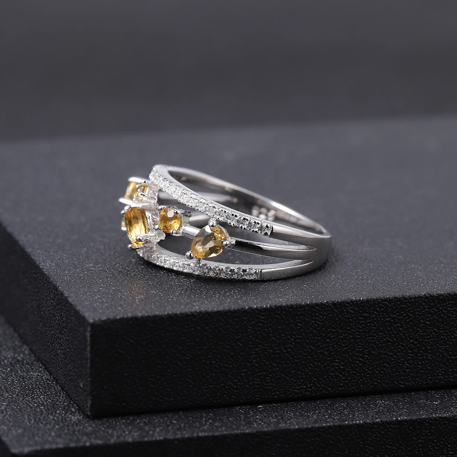 Женское кольцо из серебра 925 пробы с натуральным цитрином карата