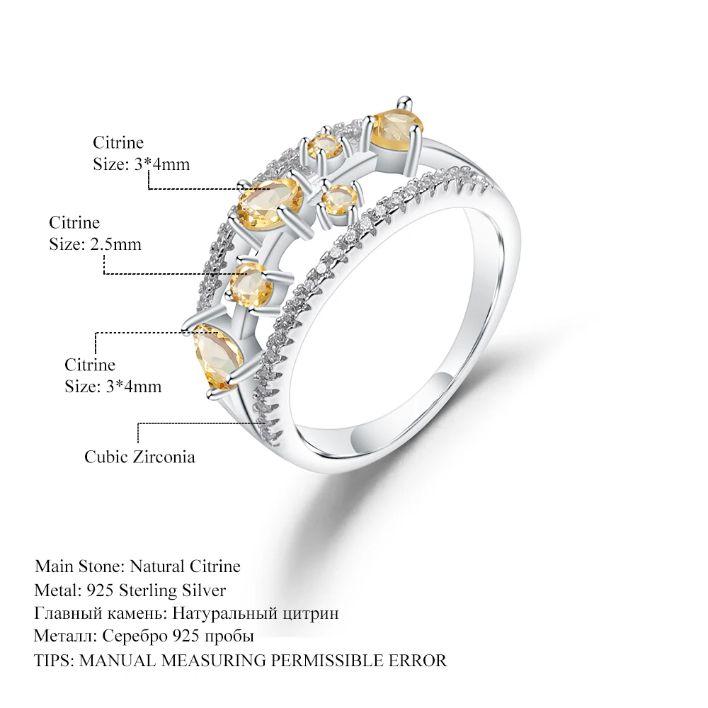 Кольцо с натуральным цитрином 3,42 карата, серебряное кольцо с трем...