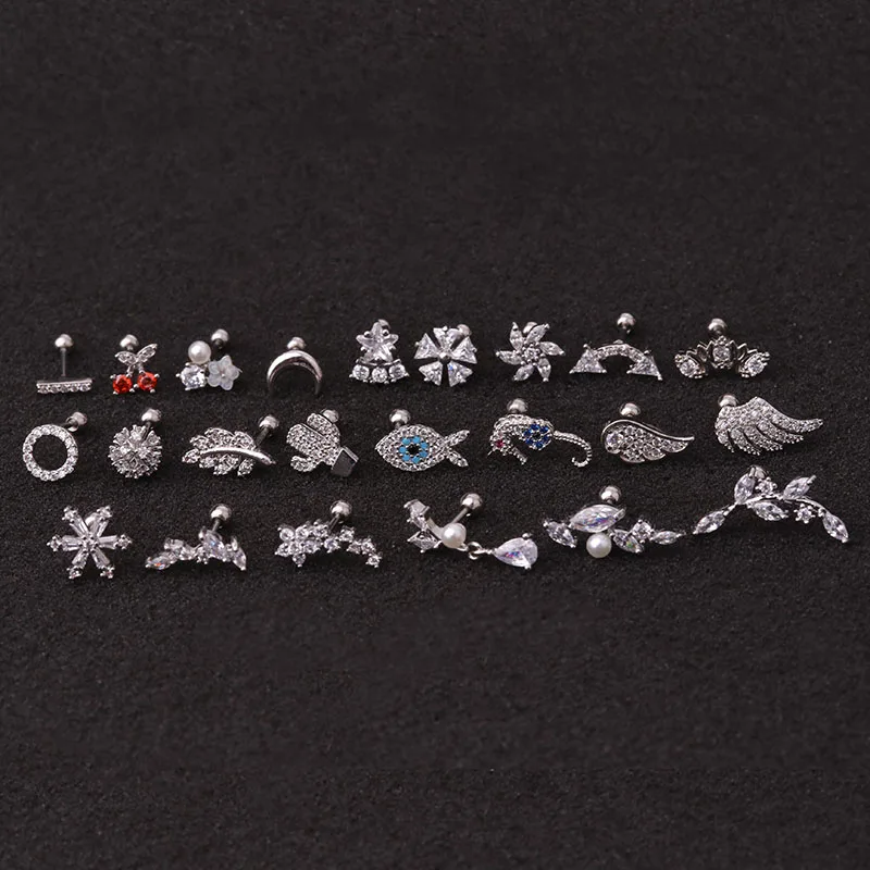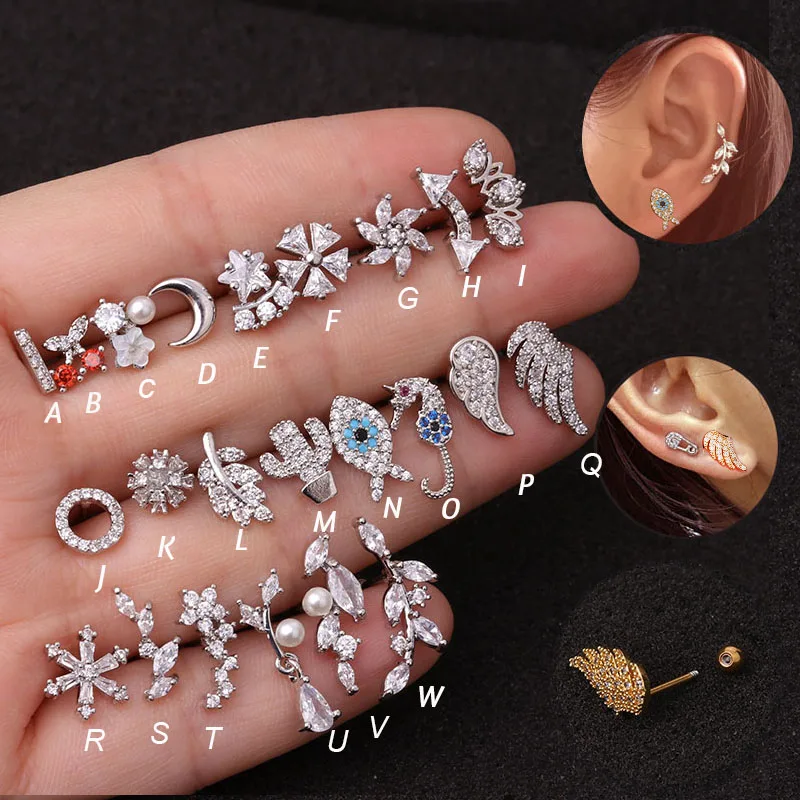 Хит продаж, 1 шт., стальная медная рыба, ручное дерево, CZ, пирсинг ушей, ювелирные изделия, стальная штанга, daith, серьги спиральный для хряща шпильки для пирсинга