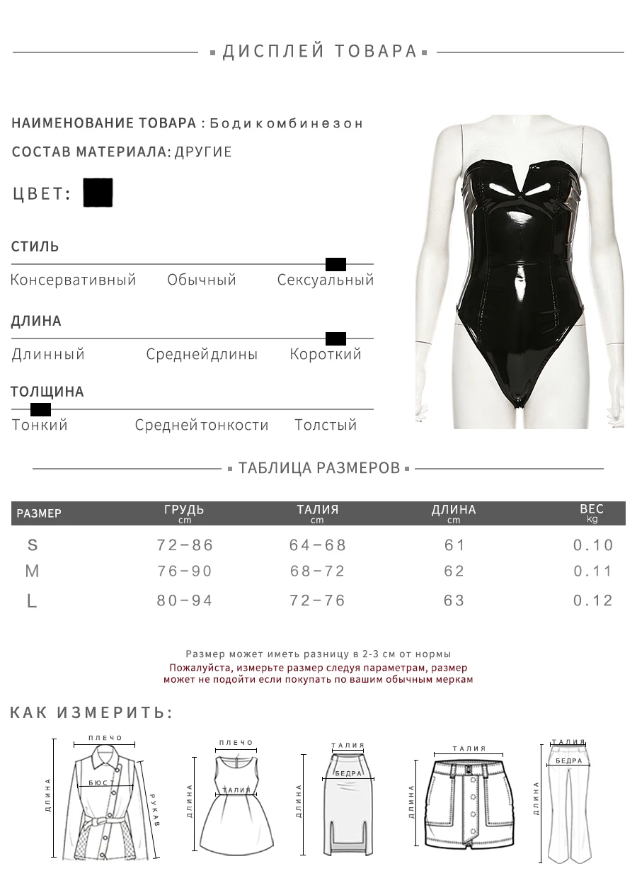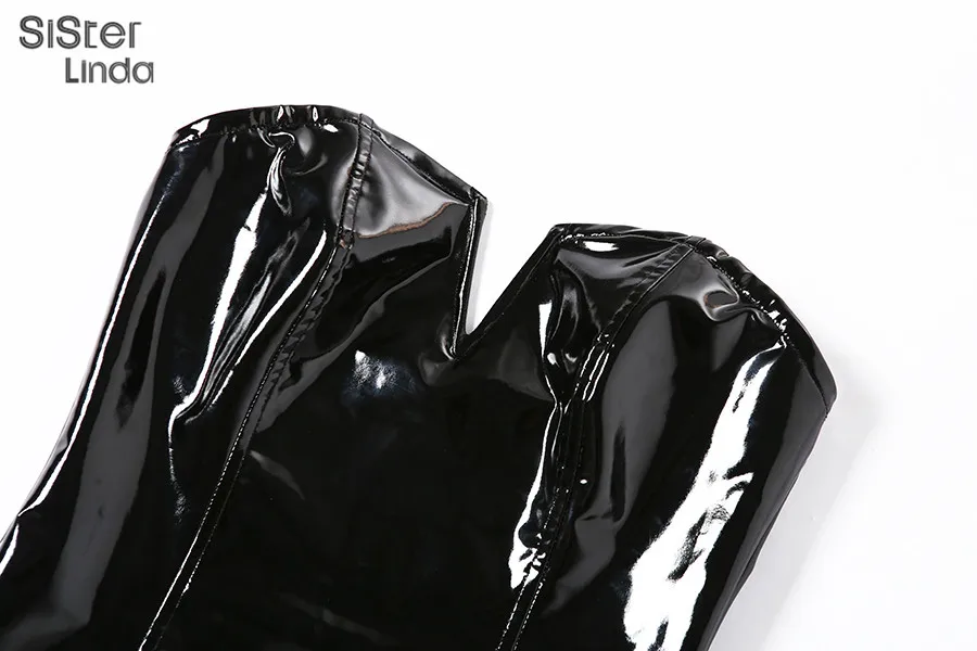 Sisterlinda, черное боди из искусственной кожи, сексуальное боди для женщин, v-образный вырез, без бретелек, женские комбинезоны, уличные, вечерние, боди, женский комбинезон