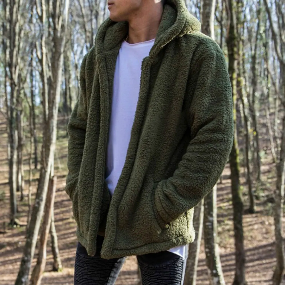 Зимняя Теплая мужская зимняя толстовка с капюшоном, пушистая флисов...