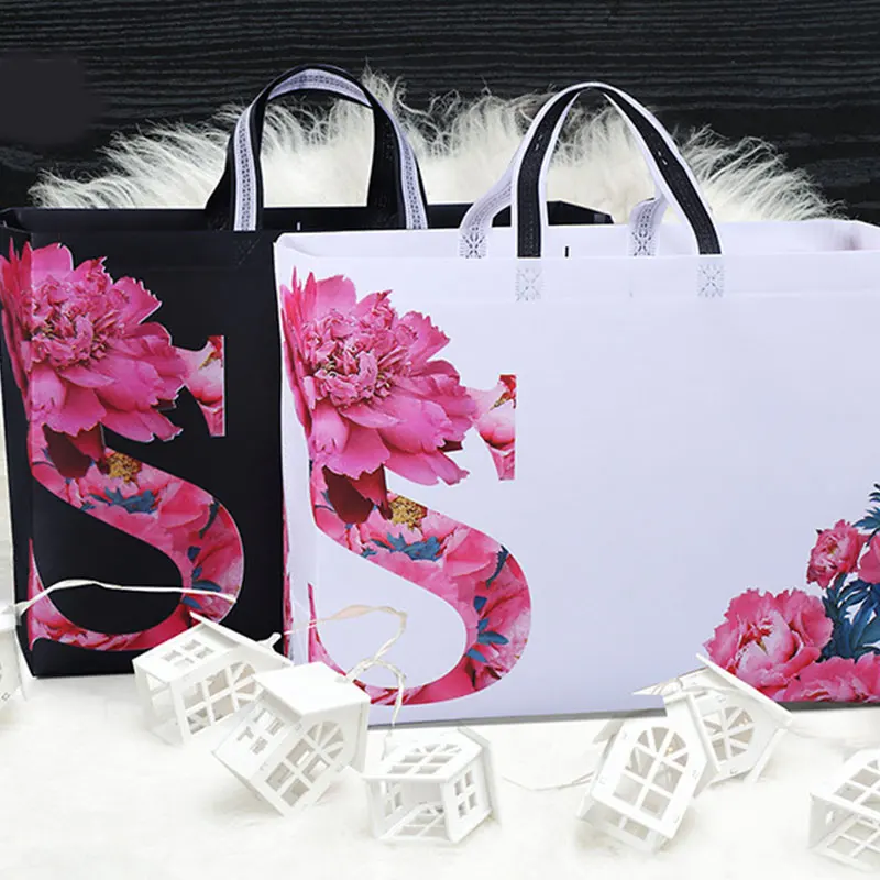 Новая складная сумка-шоппер с цветами, многоразовая Нетканая эко-сумка-тоут, черная большая тканевая сумка-шоппер унисекс, сумки для продуктов, сумка