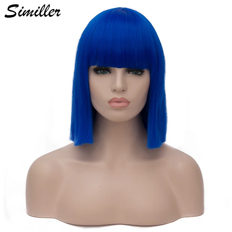 Женские короткие парики Similler, прямые синтетические волосы, парик Боб для косплея, термостойкий, синий, черный, красный, темно-зеленый, фиолетовый