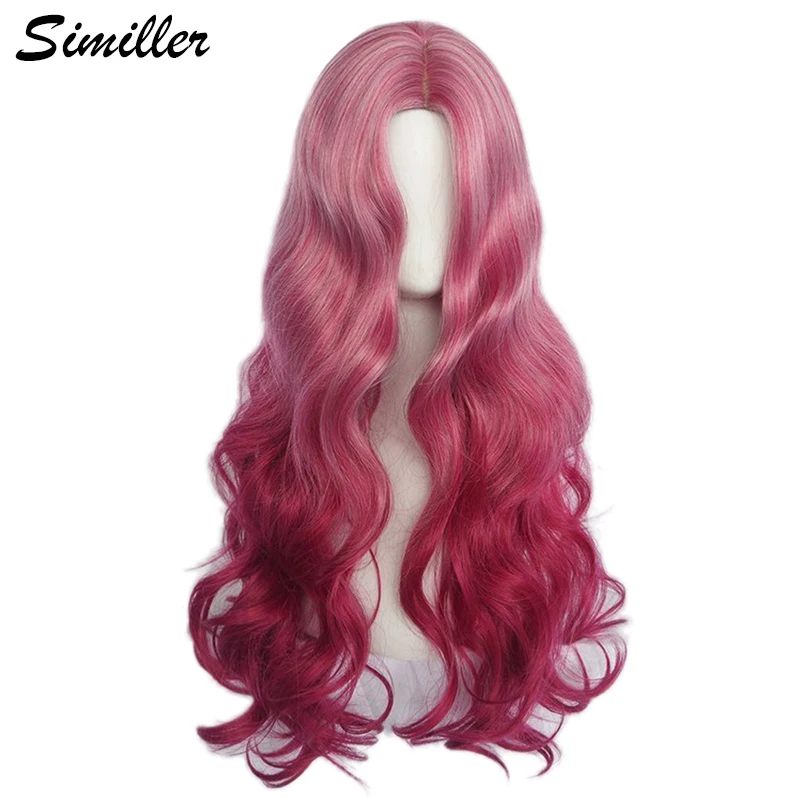 Similler Длинные Синтетические парики для женщин, цвет розы, центральное разделение, косплей, высокотемпературное волокно, вьющиеся волосы