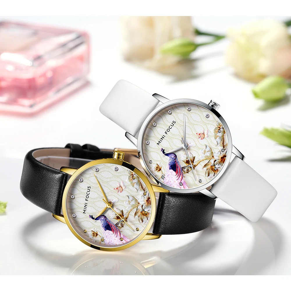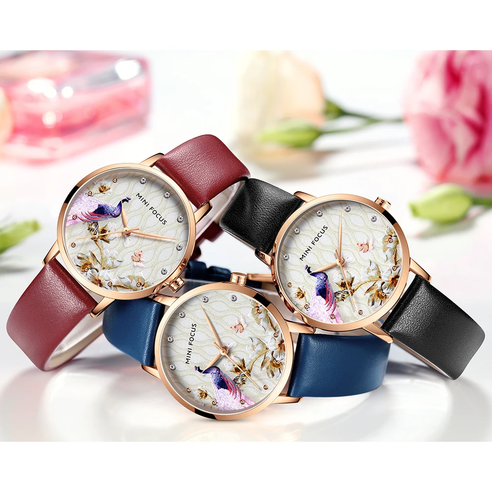 MINIFOCUS элегантные женские кварцевые часы, женские кожаные модные...