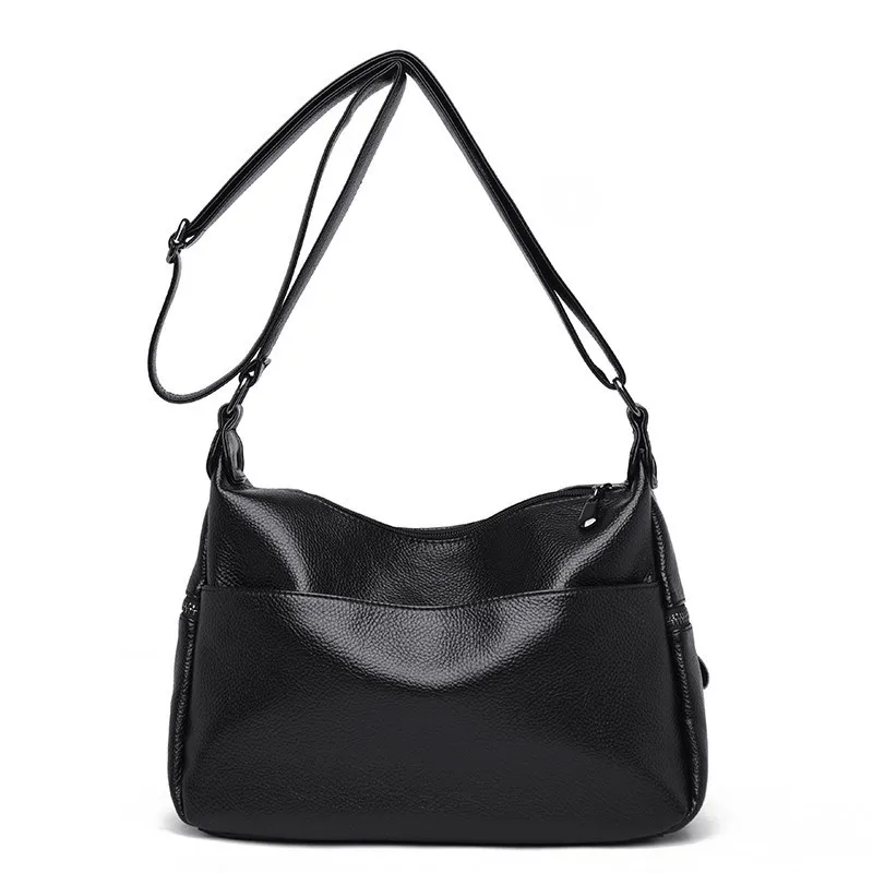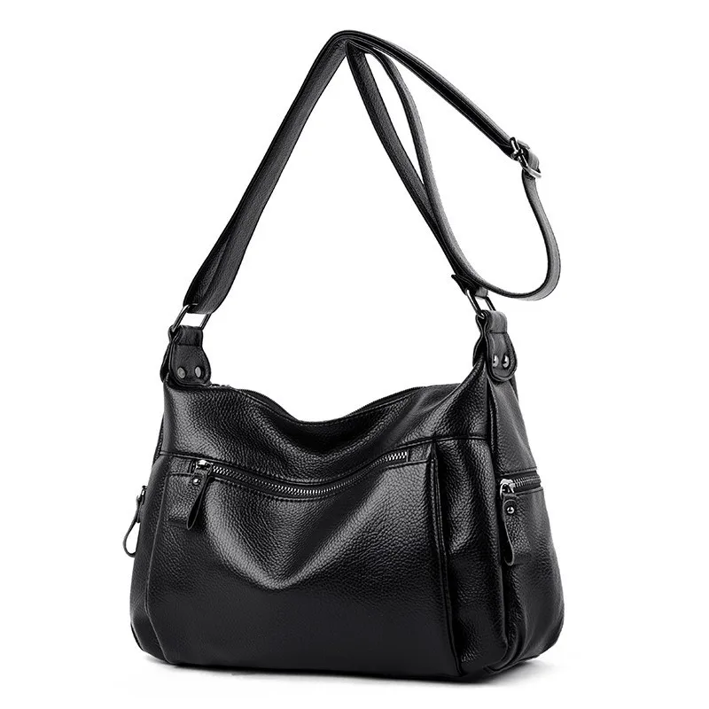 Простые черные женские сумки на плечо, саквояж через плечо, Женская винтажная кожаная сумка-мессенджер, дизайнерская дамская сумочка