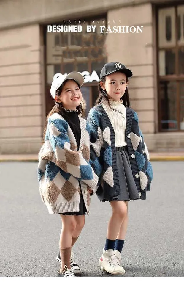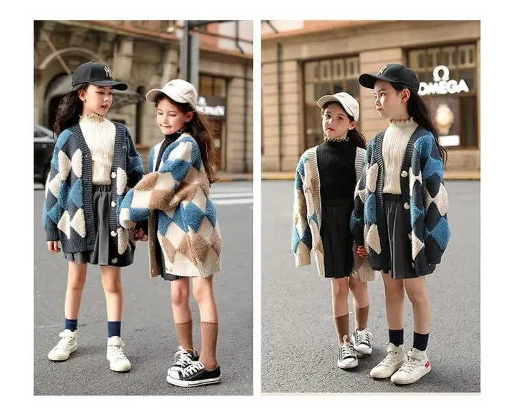 Трикотажный кардиган для девочек, осенний, вязаный, с V-образным вырезом
