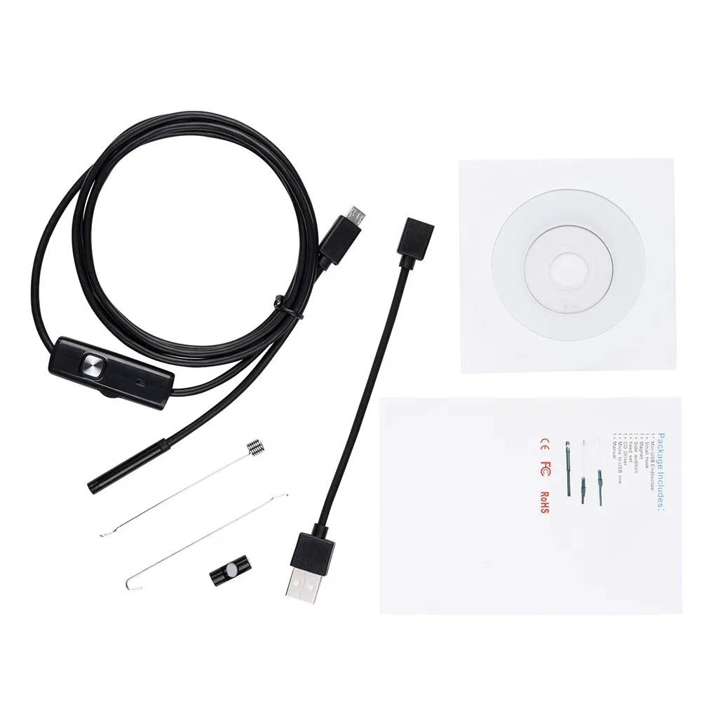 1 X Мини USB эндоскоп 1 X маленький Крючок 1 X магнит 1 X сторона Прослушивание 1 фиксированный Набор 1 CD-диск Привод