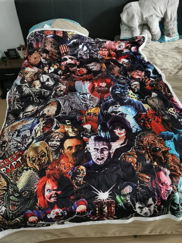 Новейшее одеяло из фильма ужасов, детское игровое одеяло с рисунком Чаки, готическое Флисовое одеяло из шерпы, постельное белье из микрофибры 001