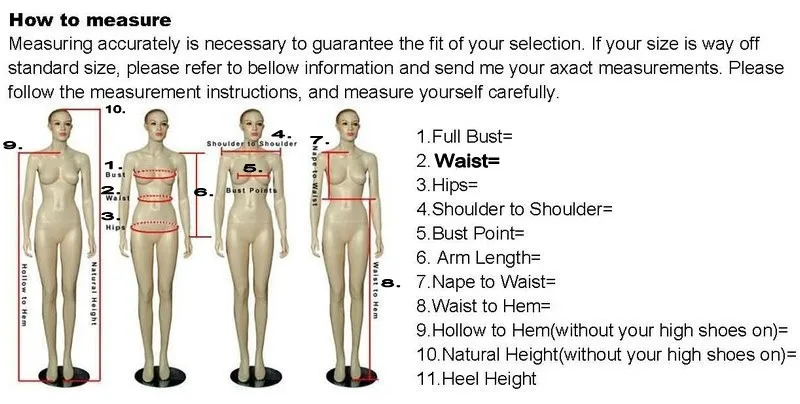 О размере, вы можете выбрать стандартный размер на нашем сайте, или отправить нам свои собственные измерения, если вы хотите платье на заказ, сделанное по собственному размеру, пожалуйста, дайте нам размер следующим образом: