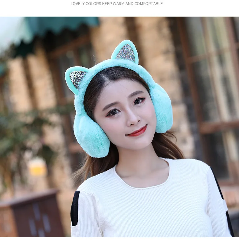 3D женские ушам теплее с котом, Кроликом, лисой, блестящие наушники...