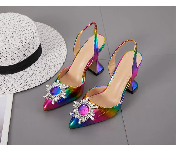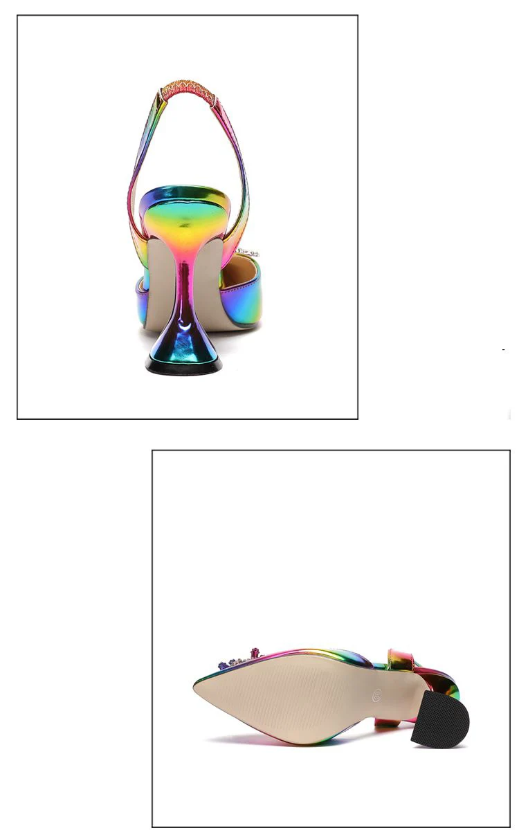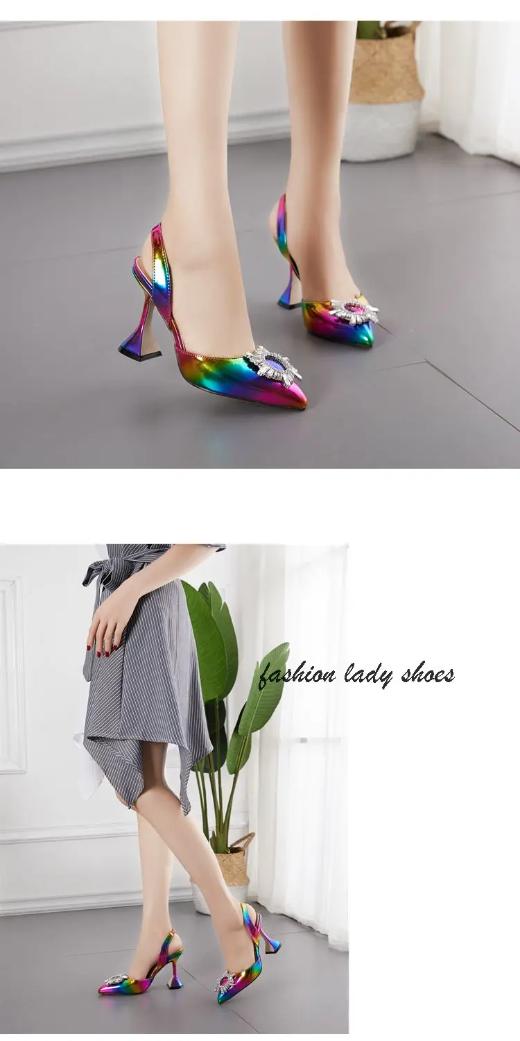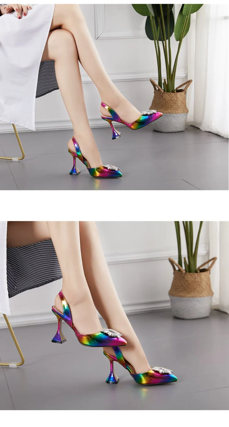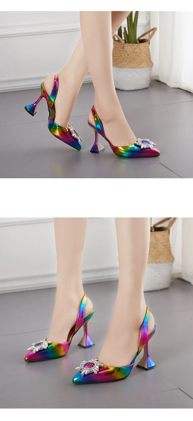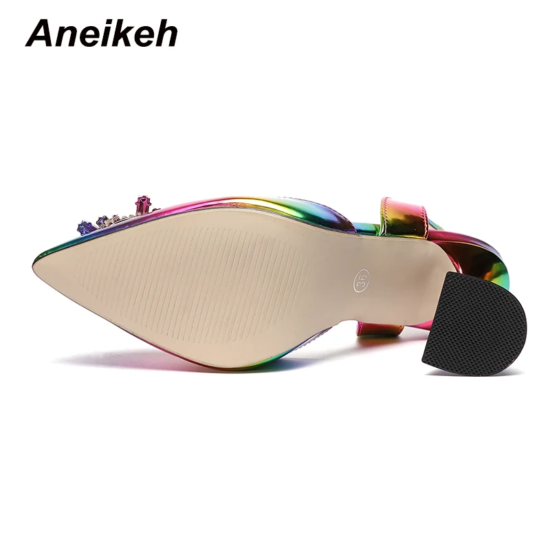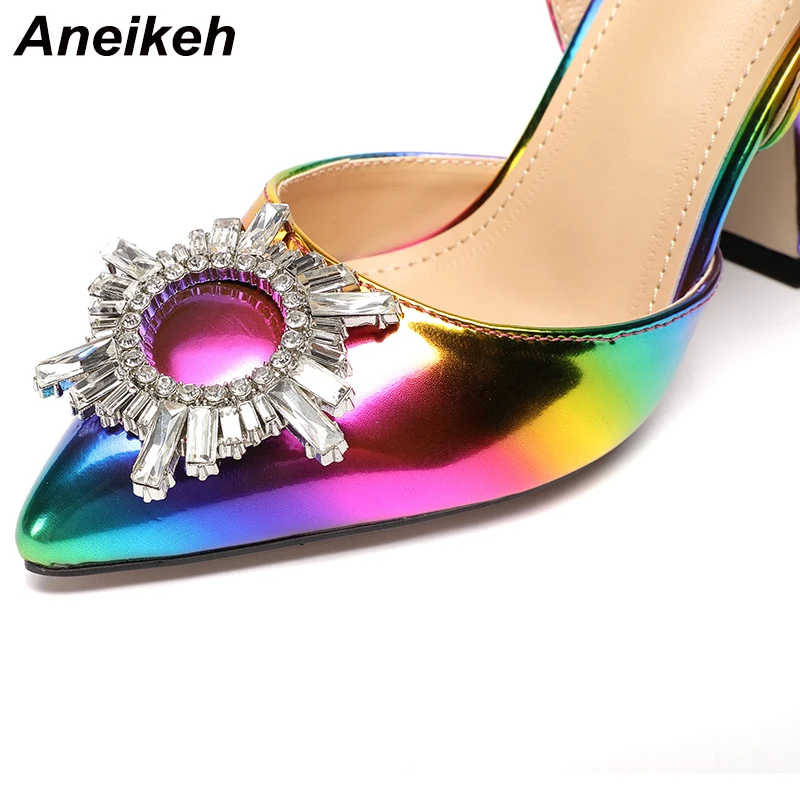 Сандалии Aneikeh женские на высоком каблуке, заостренный носок, стразы, каблук-шпилька, вечерние, из искусственной кожи, цветные