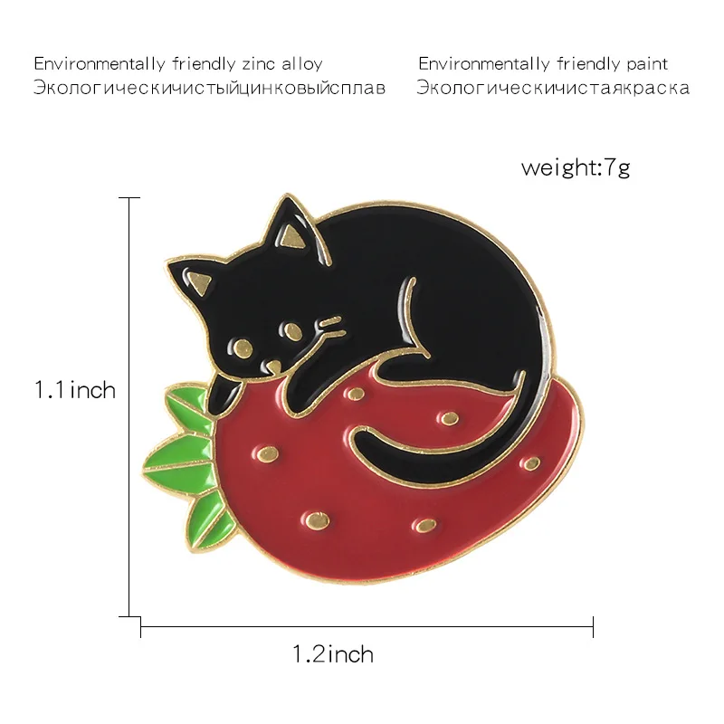 Женская Брошь с эмалью, черная брошь в форме кошки, клубники, значо...