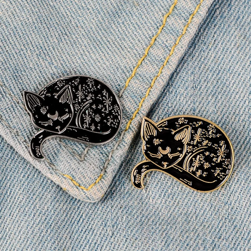 Броши с изображением черного кота из мультфильма, эмалированные, бр...