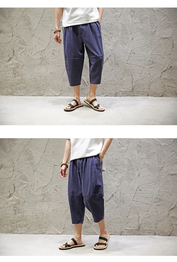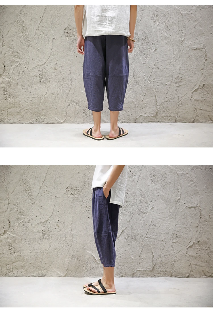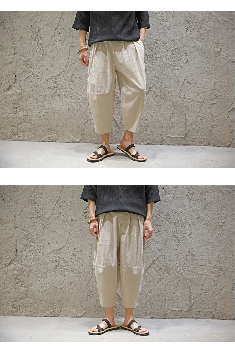 Летние повседневные штаны в китайском стиле для мужчин, модные широкие брюки из хлопка и льна, свободные короткие шаровары, 2019, тонкая одежда, мешковатые штаны