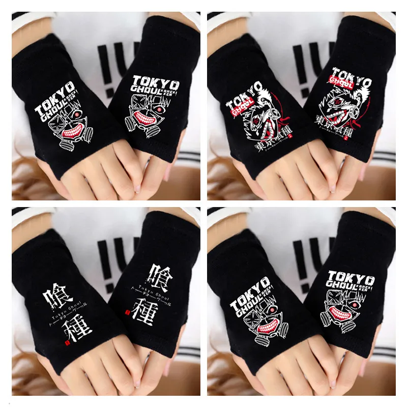 Аниме Токийский Гуль канеки Кен косплей перчатки для женщин и мужчин Хлопковые вязаные теплые перчатки на полпальца рукавицы на запястье Новинка