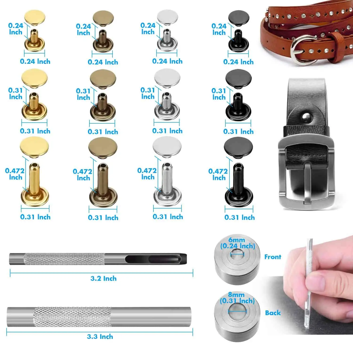 Кожаные заклепки с двойной крышкой, 4 цвета и 3 размера, набор заклепок, 360 наборов