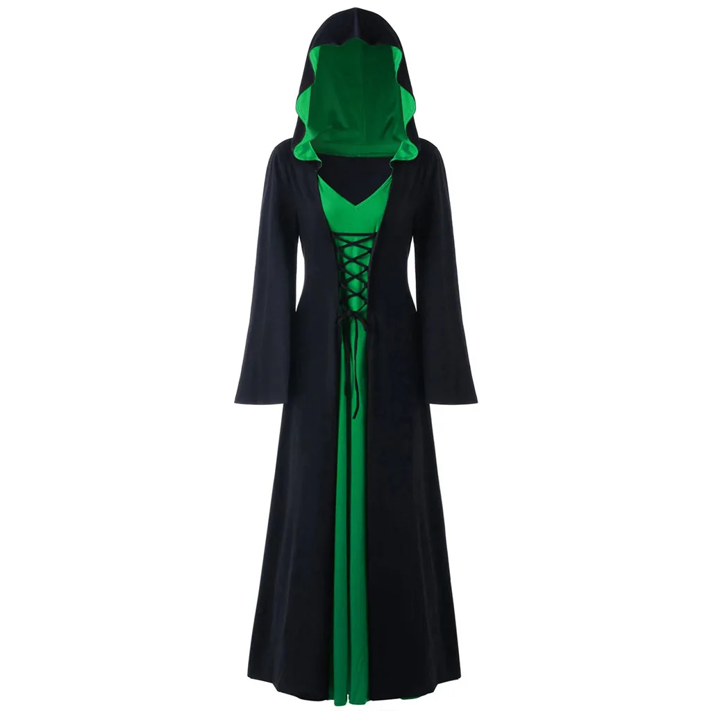 Женский винтажный средневековый готический костюм ведьмы, длинное платье Nienna с капюшоном, корсет на шнуровке, платье для Хэллоуина размера плюс 4XL 5XL