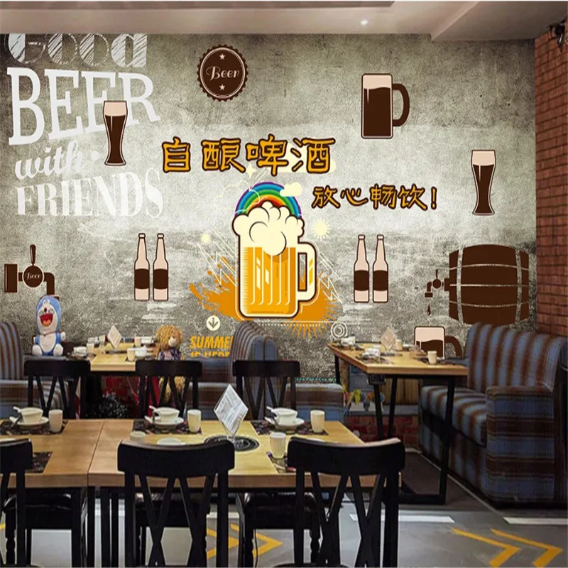 Пользовательские Ретро Ностальгический промышленный Стиль 3D пивная тема настенная бумага бар ресторан снэк-бар фон Декор настенная бумага 3D