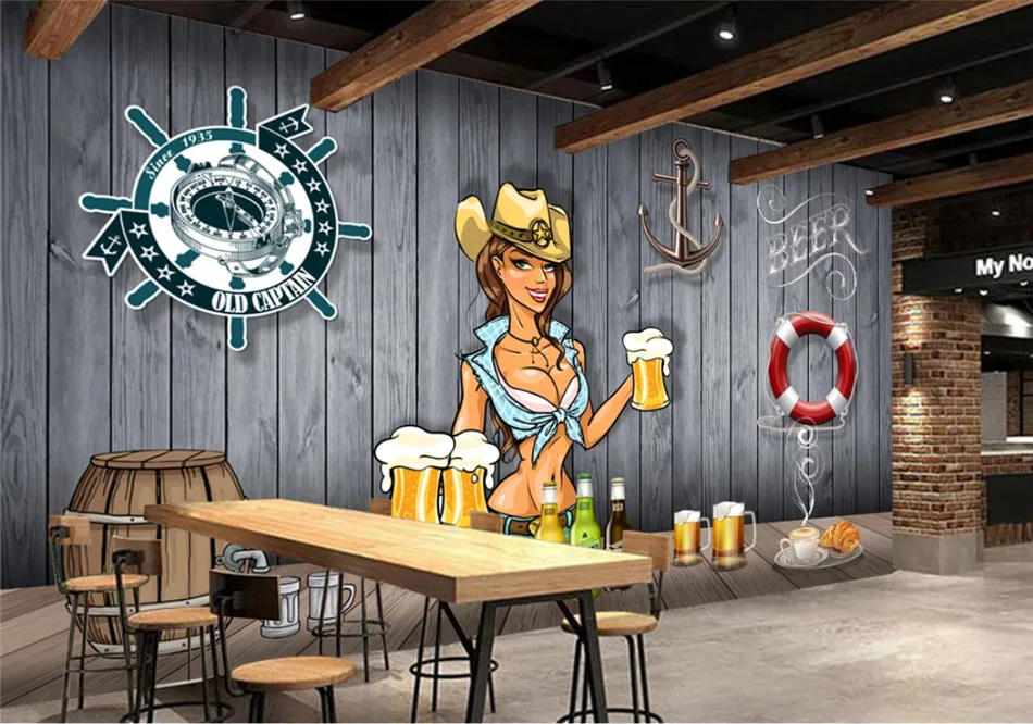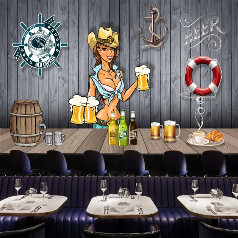 Индивидуальная Ручная роспись Доска пиво барбекю Ресторан фон настенная бумага бар клуб промышленный Декор настенная бумага 3D