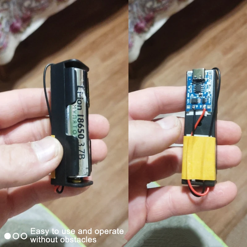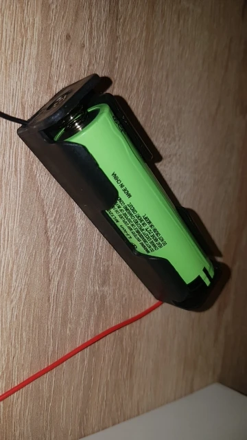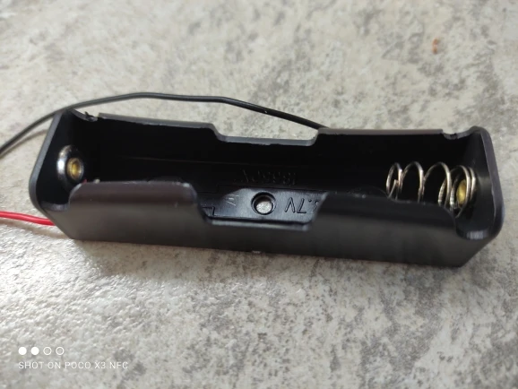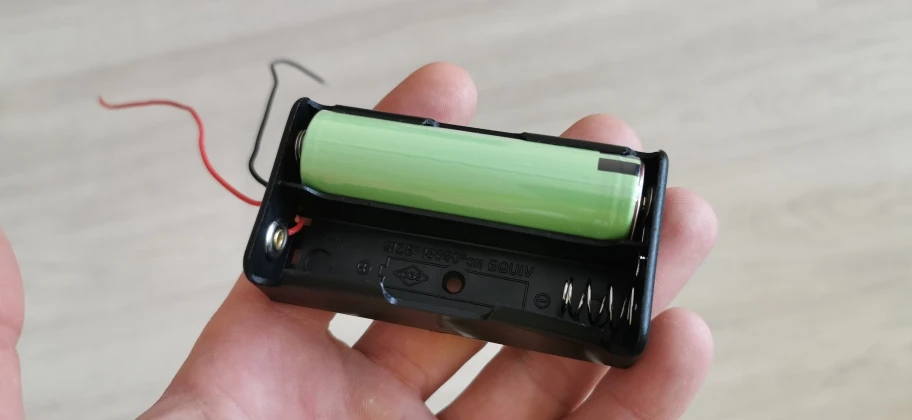 18650 подходит ок. Провода тонкие-сравните их с сверлом 0,55. При измерении с помощью штангенциркуля диапазон ~ 0,1-0,15 мм (от нескольких очень тонких проводов, скрученных вместе). А также подключение к пружину под кольцом и заклепкой, не уверены, достаточно ли сильная. Не для большого тока-будет сказать, что 0.1A является безопасным. Более 1 А, вероятно, будет жарко и может быть небезопасно.