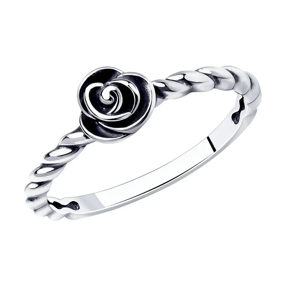 Кольцо SOKOLOV из чернёного серебраНа языке цветов роза означает признание в любви. Так, дизайнеры SOKOLOV создали для вас своё признание. Подчеркните вашу нежность и женственность с помощью изящного серебряного кольца с эффектом чернения. Оно идеально подойдёт практически к любому наряду, и если это дорогой сердцу подарок, то его можно будет носить не снимая. Нежное платье или джинсы – не важно, универсальный оттенок серебра гармонично дополнит образ.