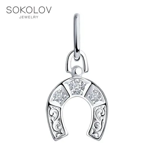 Серебряная подвеска-подкова с фианитами SOKOLOV, Серебро, 925, Оригинальная продукция