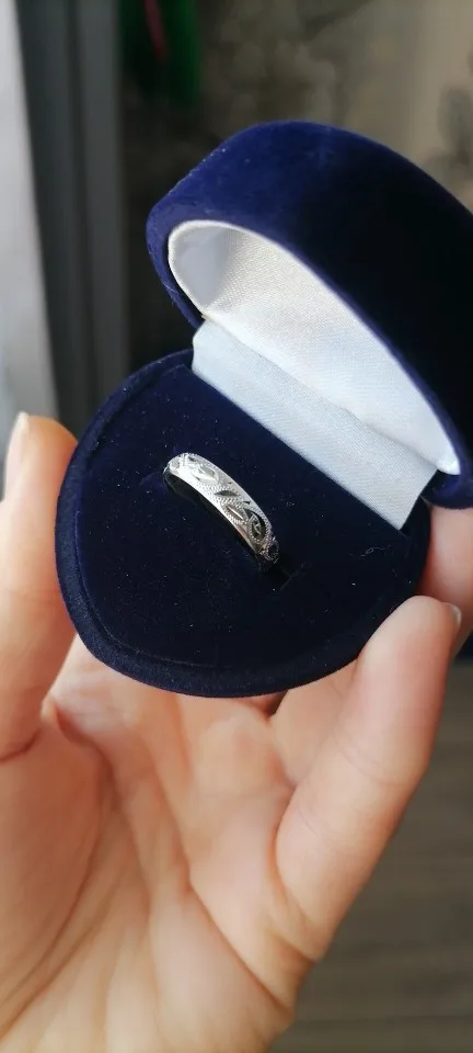 SOKOLOV как всегда порадовал. Доставка 6(шесть) дней. Кольцо точно, как на фото. Но.... гравировка только на половине внешней стороны, не вкруговую! Т.е только наружная часть кольца(когда кольцо на пальце) гравированная, а та часть что внутри ладони - гладкая. Рекомендую.