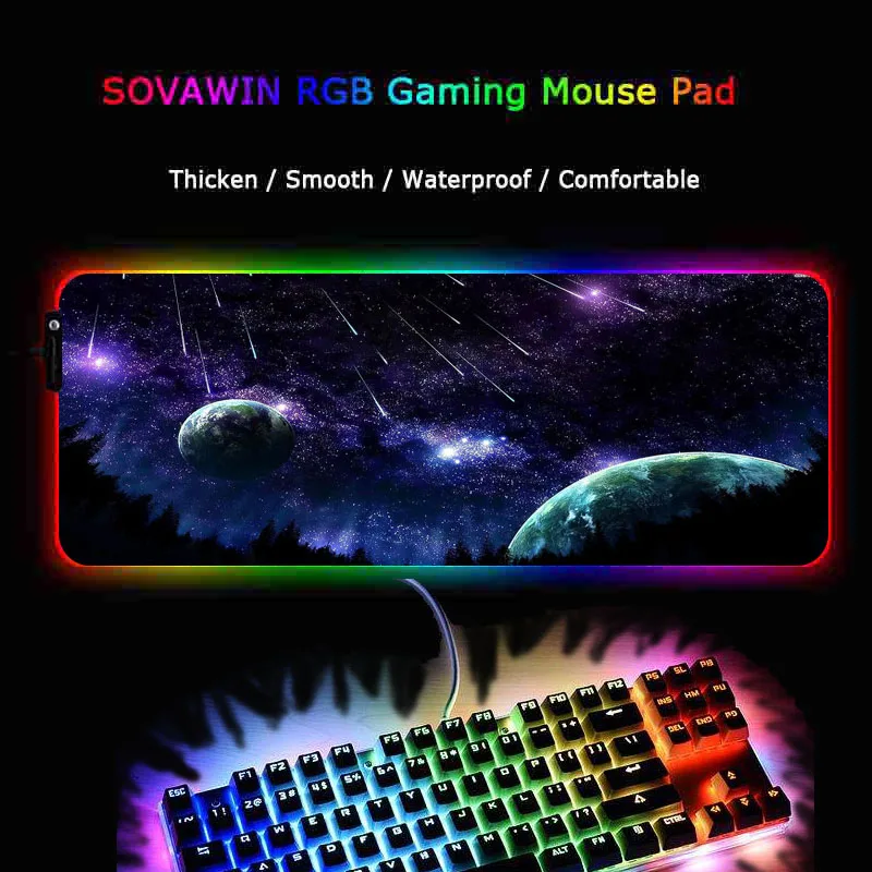 Игровой коврик для мыши XGZ Space Moon, большой RGB коврик для мыши, геймерский большой коврик для мыши, компьютерный коврик для мыши со светодиодной подсветкой XXL, Настольный коврик для клавиатуры