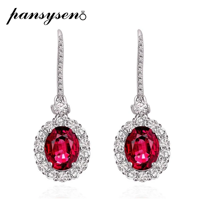 Серьги-подвески женские из серебра 925 пробы, с рубиновым сапфиром