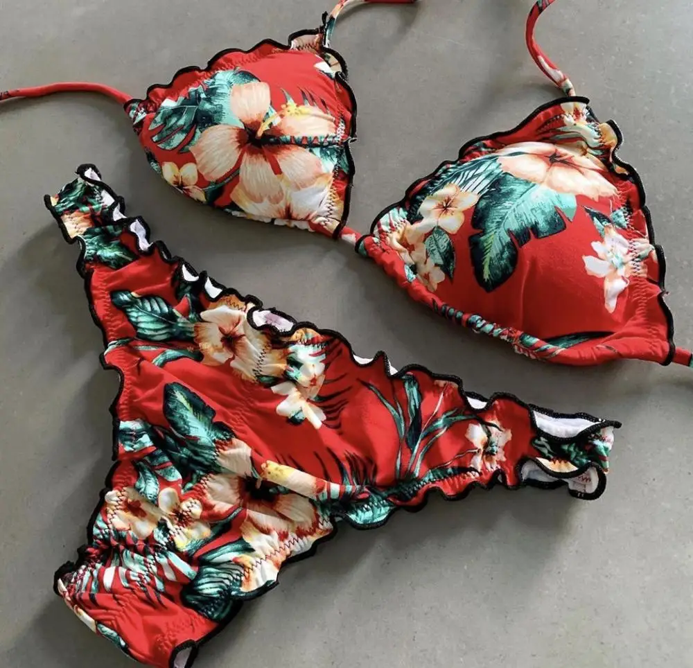 Купальник бикини женский с принтом, пикантный купальник с чашками пуш-ап, топ на шнуровке, пляжный бразильский комплект бикини, купальный костюм, 2020