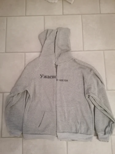 Заказала xs на свой 40 - кофта пришла оочень большая. Выглядит не как "оверсайз", а как будто папину фуфайку надела XD А ещё в рукавах колючий материал - без какого лонгслива поднизом носить нереально В остальном всё ок: качество нормальное, запах незначительный, надпись ровная