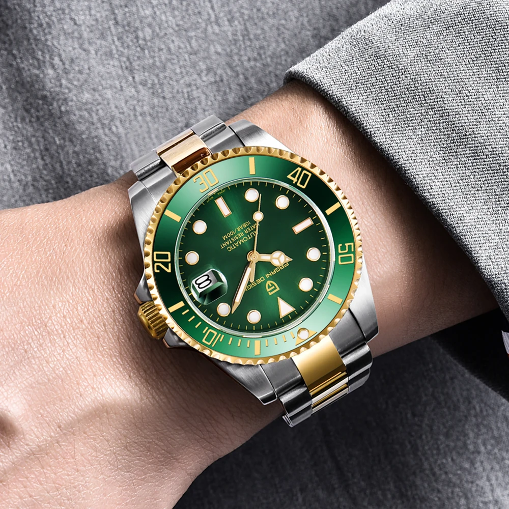 Часы мужские, автоматические, зеленые, водонепроницаемые, 2020 м, с сапфировым стеклом, 100