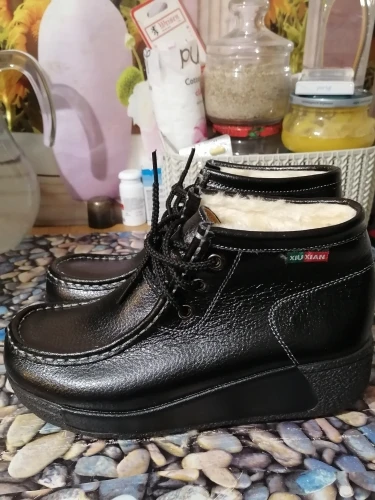 Туфли женские зимние из натуральной кожи на плоской платформе
