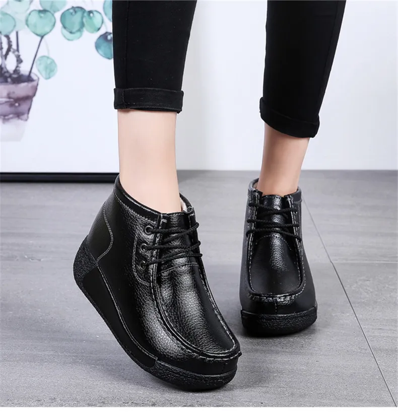PINSEN 2020 женские туфли на плоской платформе женские зимние с мех...