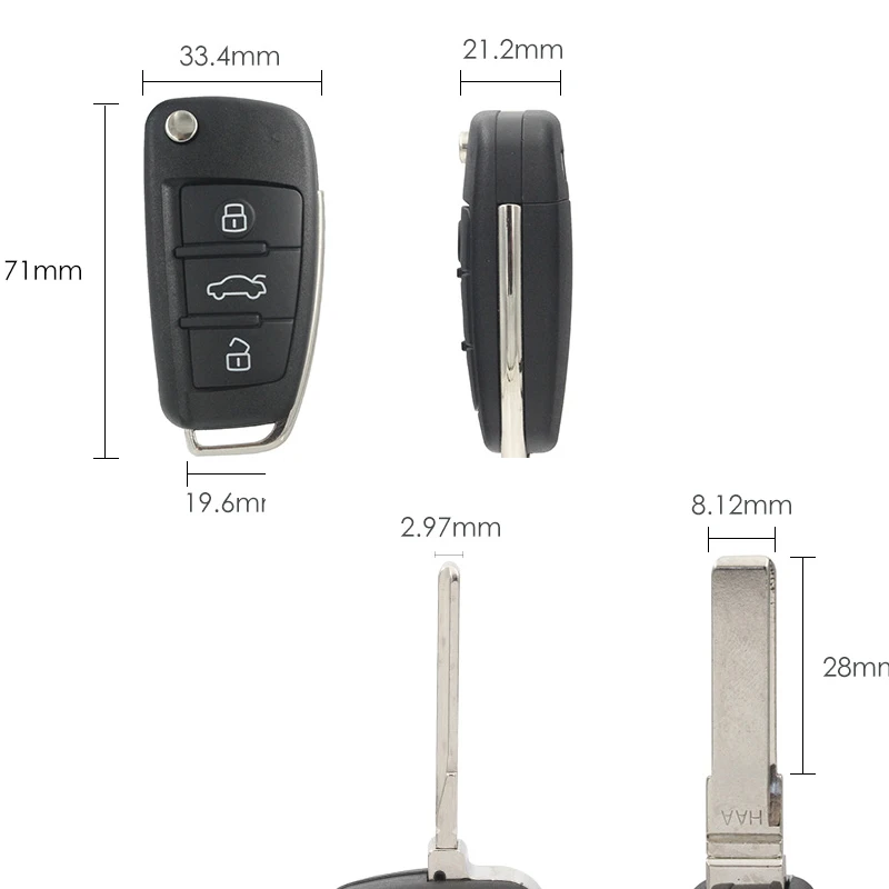 Ключ для автомобиля KEYECU, ключ для Audi A3, A4, A6, A8, старые модели, брелок с 3 кнопками, 433 МГц, чип ID48, 4D0837231A 4D0837231N