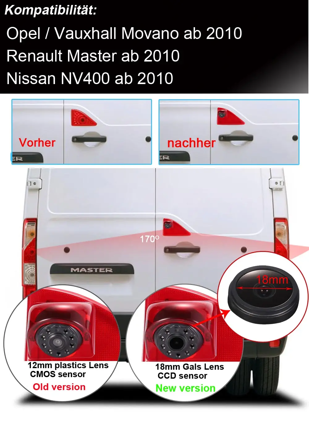 Задсветильник для автомобиля Renault Master ab Nissan NV400 AB, камера заднего вида, 18 мм, 100% г.
