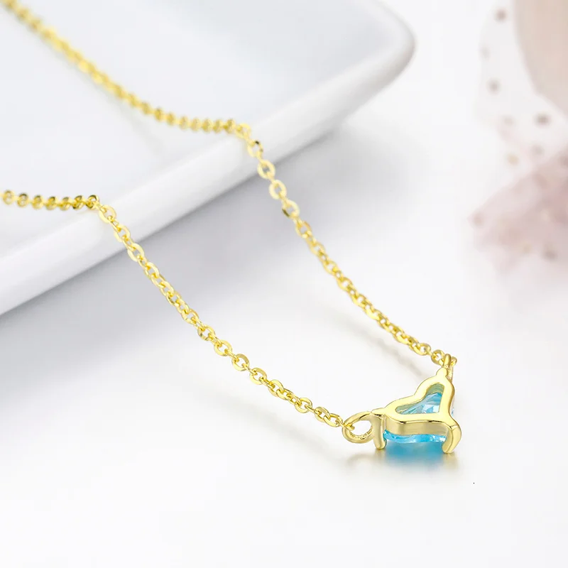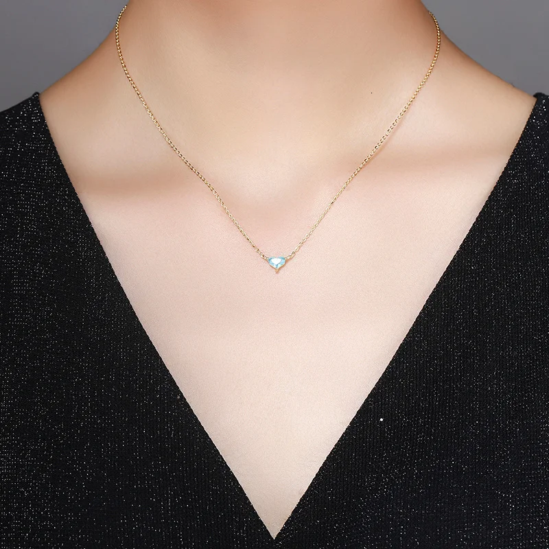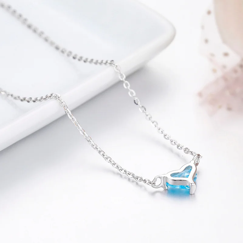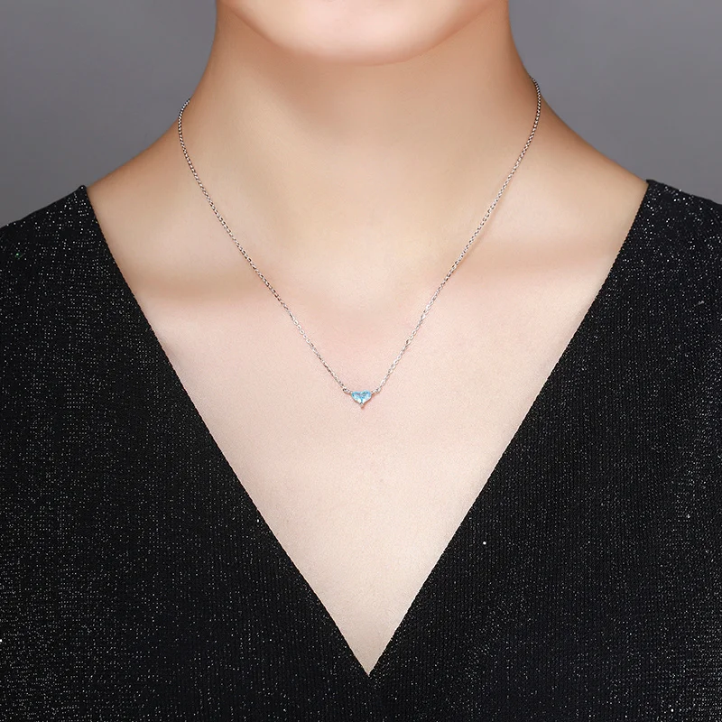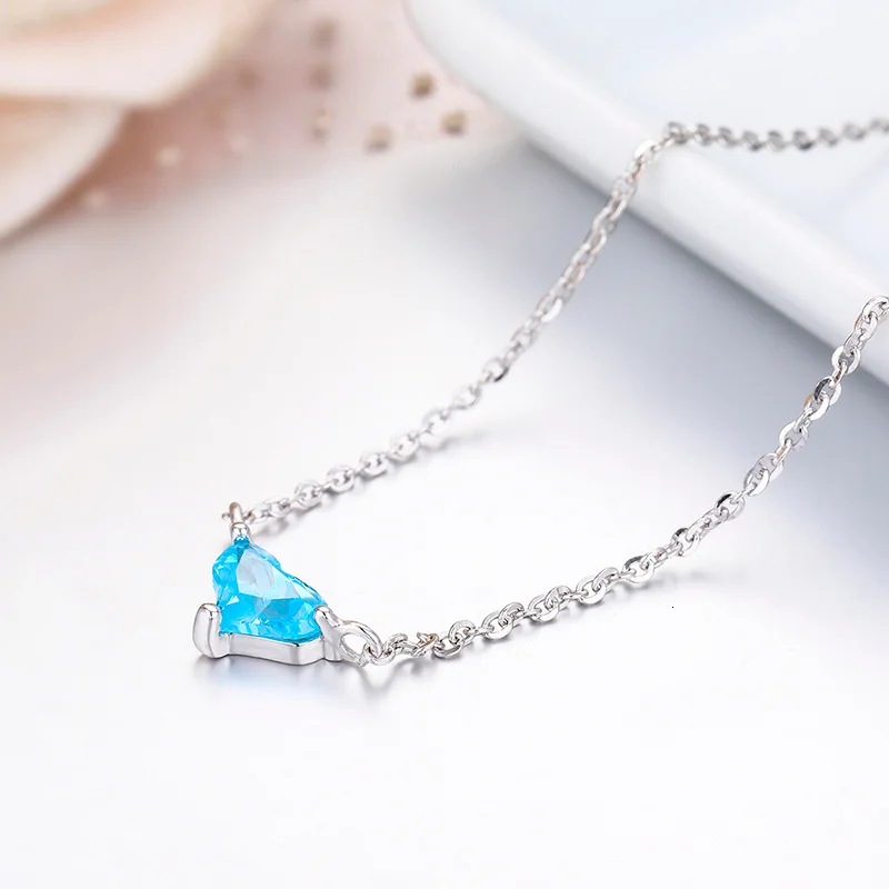 Женский чокер из серебра 925 пробы, с голубым кулоном в виде сердца