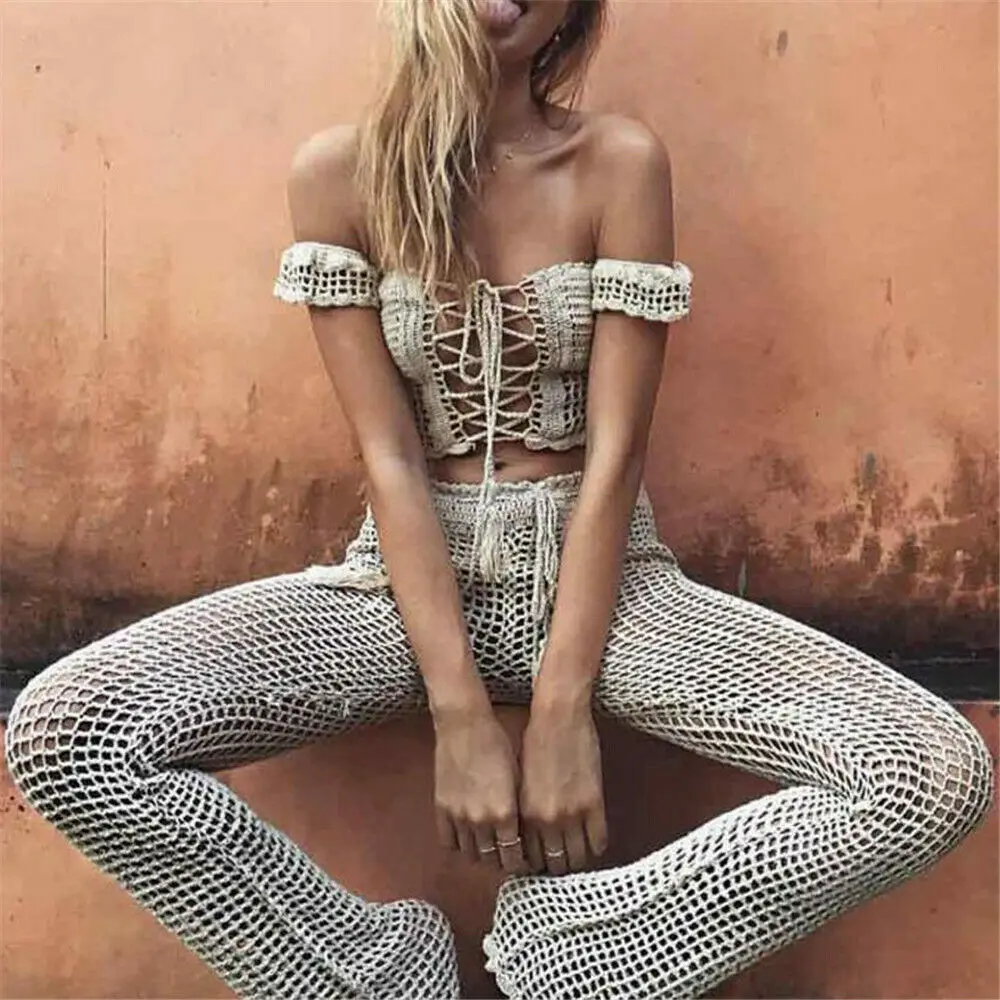 Брюки женские прозрачные сетчатые с вырезами, пикантные пляжные плавки с широкими штанинами, пляжные длинные штаны, накидки, пляжный костюм