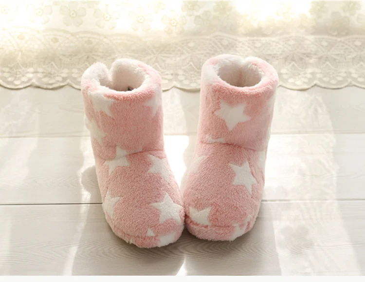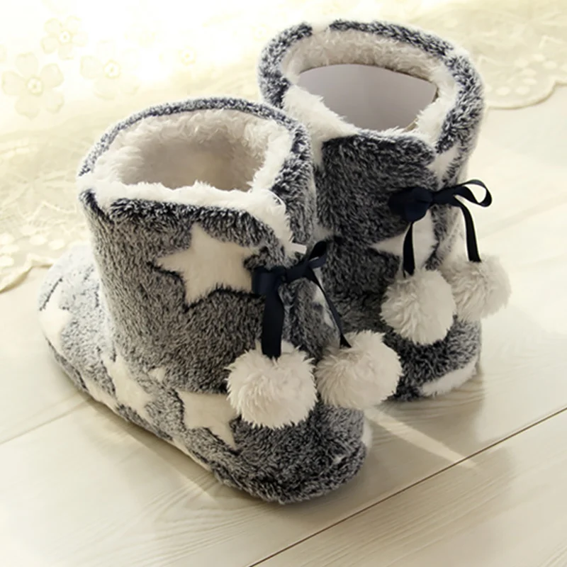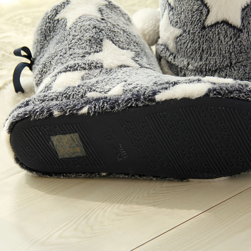 Тапочки женские зимние, плюшевые, с рисунком в виде звезд, Нескользящие, 2020