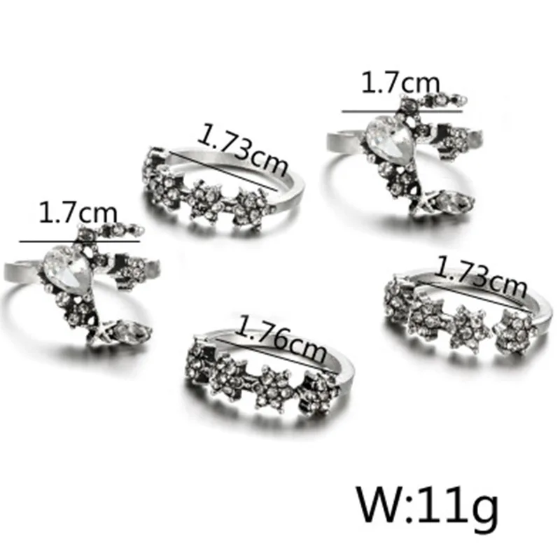 5 шт.компл. набор женских колец в богемном стиле с цветами, кристал...