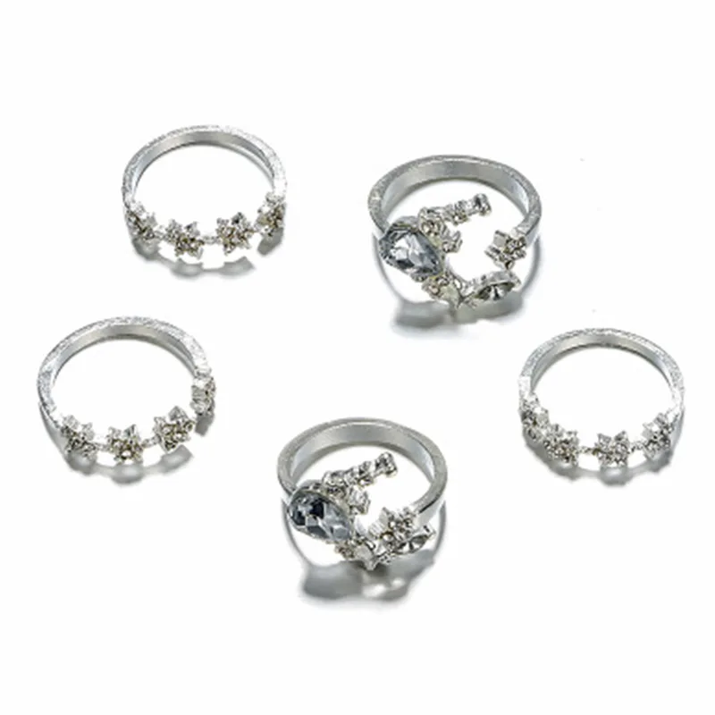 Новинка 2019, роскошный комплект из пяти предметов в богемном стиле с полудрагоценным кольцом, кольцо в стиле ретро со звездой и луной, ювелирные изделия, очаровательные подарки