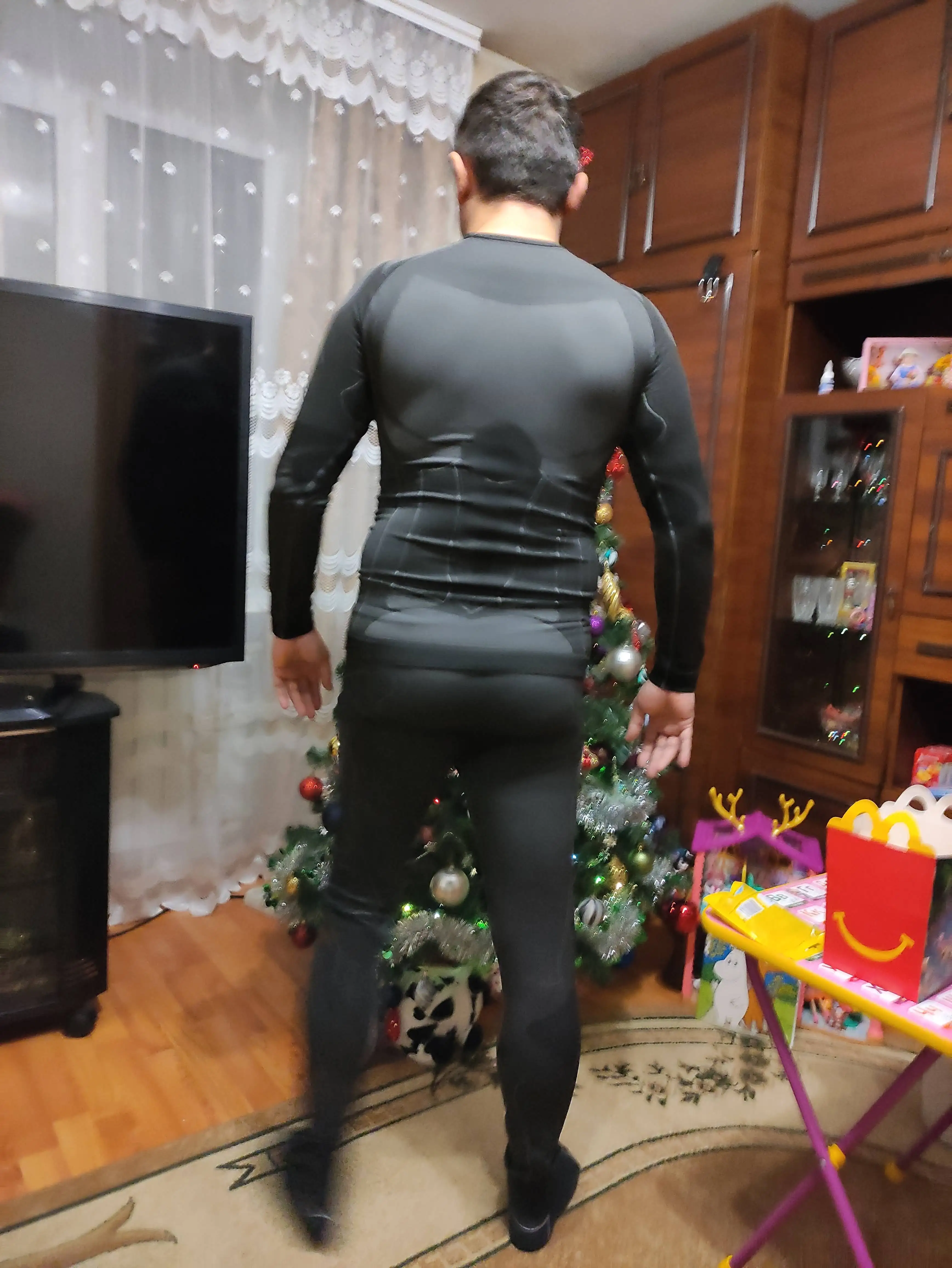 Костюм отличный! Как раз по размеру. Плотный и облегающий. Провёл несколько тренировок, ушло несколько килограмм))