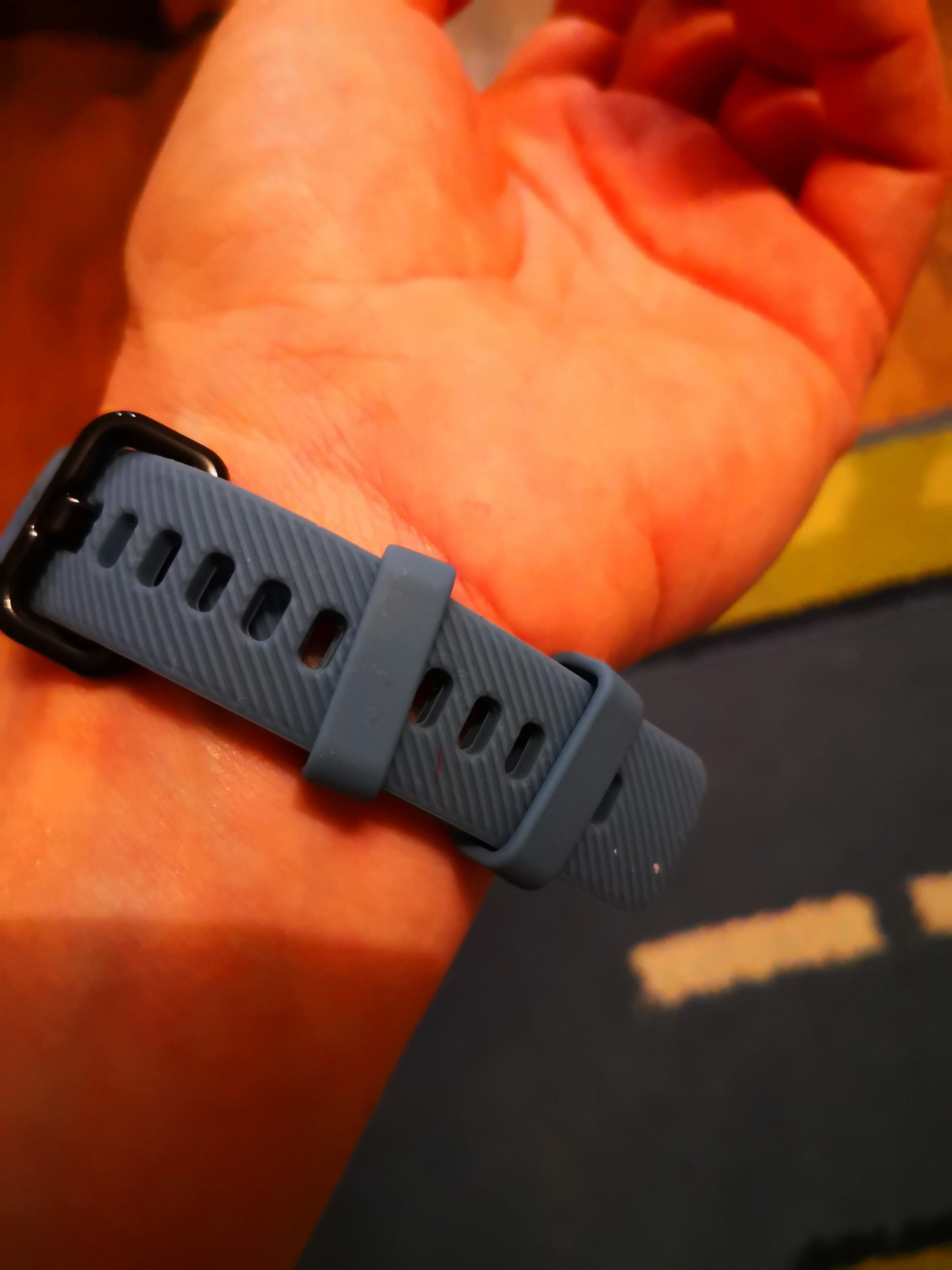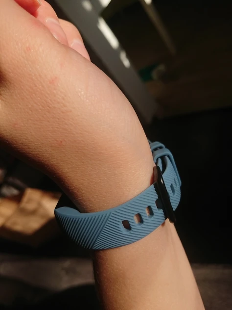 Хороший ремешок, мягкий. Даже зазоры между ремешком и корпусом браслета минимальны. Фото искажает цвет, в реальности он менее яркий, дымчато-синий и соответствует фото продавца.