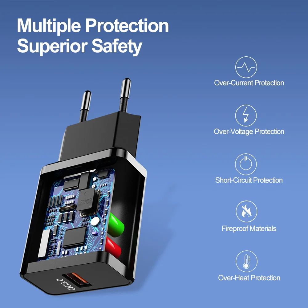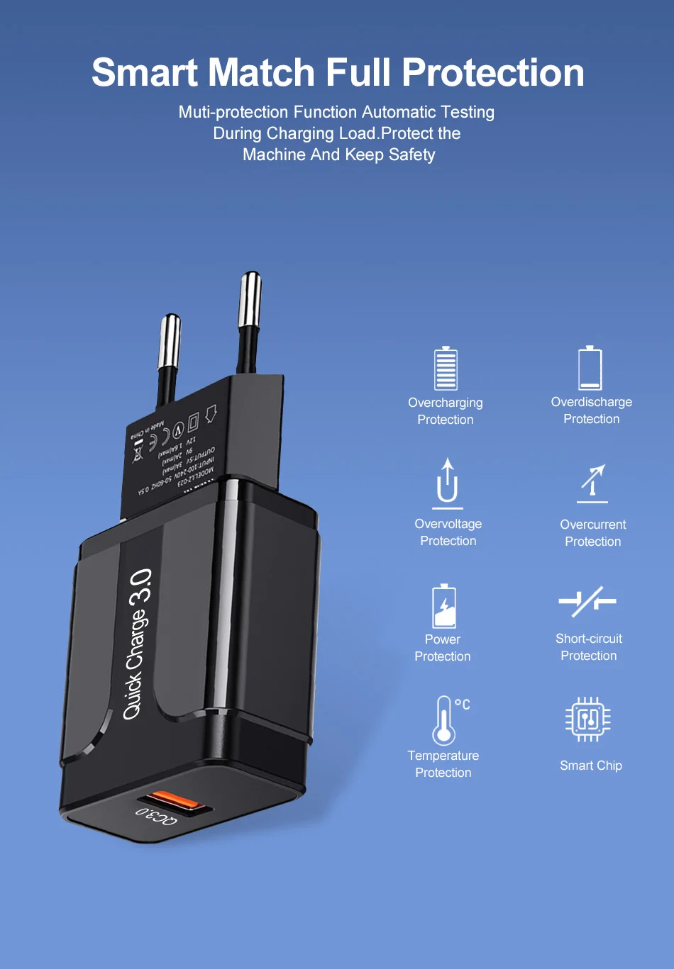 Адаптер OLAF для зарядного устройства, QC 3.0, 18 Вт, USB порт, белыйчёрный